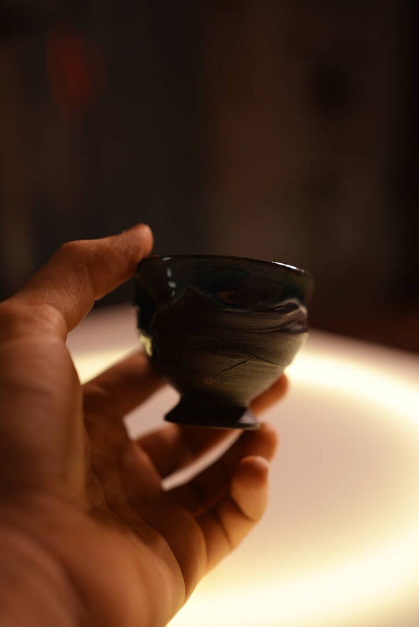 Небольшой тяван из чёрного шамота с синим оливковым оттенком.Объём 45 мл идеально подходит для личного чаепития или маленьких церемоний.Форма напоминает стопку, создавая ощущение аккуратной гармонии и уюта.